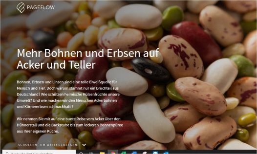 Kennt Ihr schon den neuen Pageflow über die Rheinische Ackerbohne und Co, den wir in Zusammenarbeit mit der BLE gestaltet haben? Nein - Dann schnell ansehen und viel Interessantes rund um die Hülsenfrüchte erfahren!
